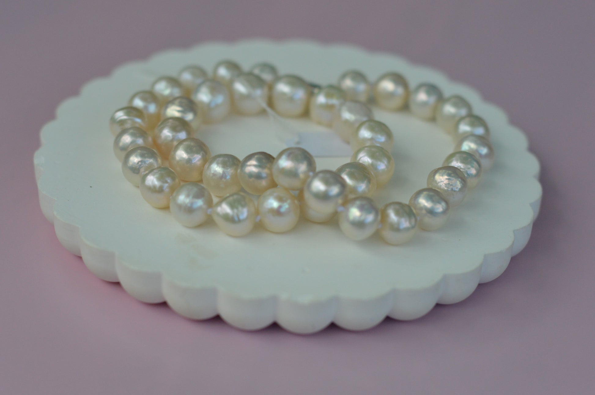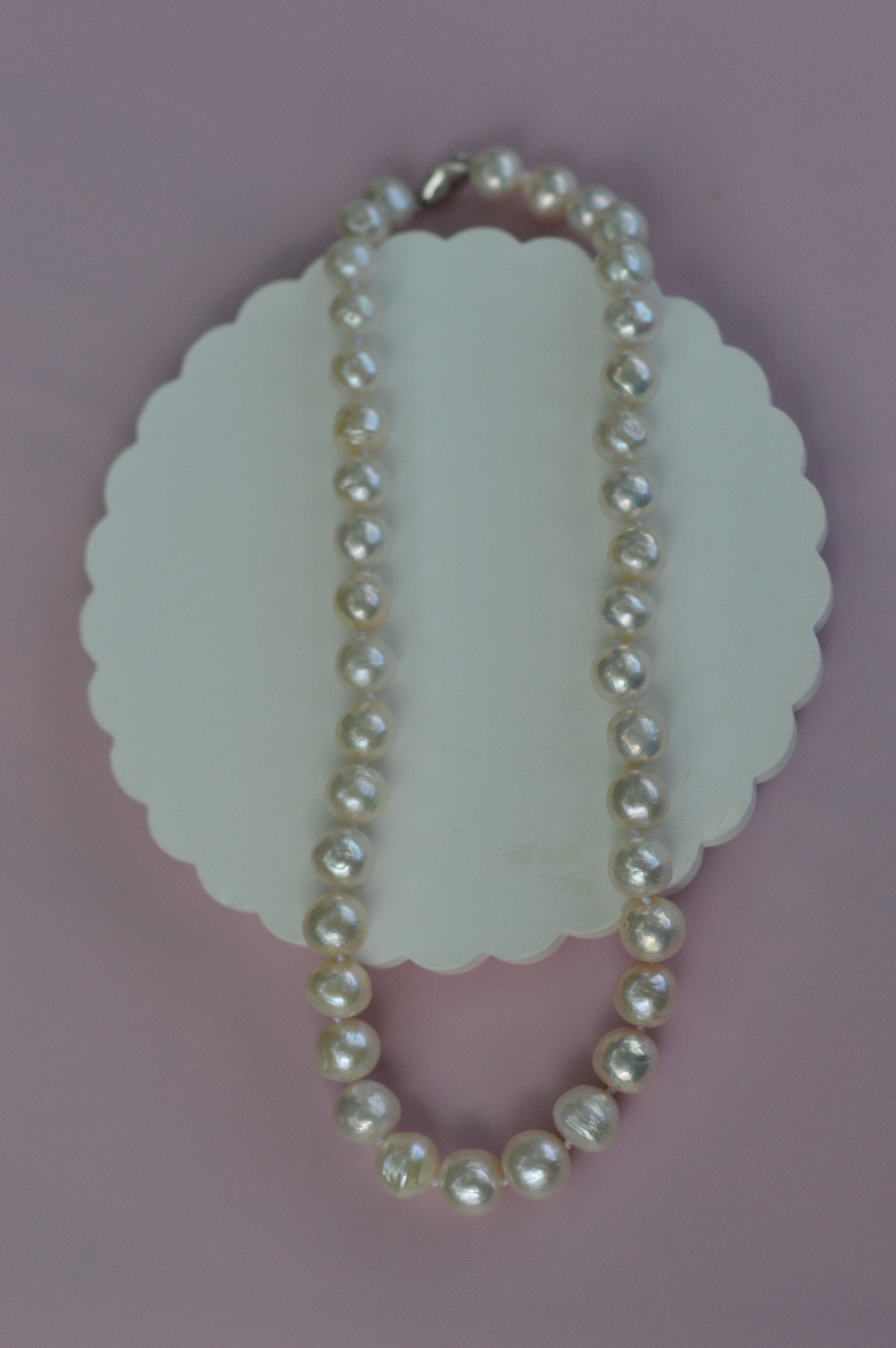 Each pearl is carefully hand-strung and individually knotted for durability, ensuring both beauty and longevity. The round shape and reflective shine of Edison pearls make this piece a luxurious addition to any jewelry collection.