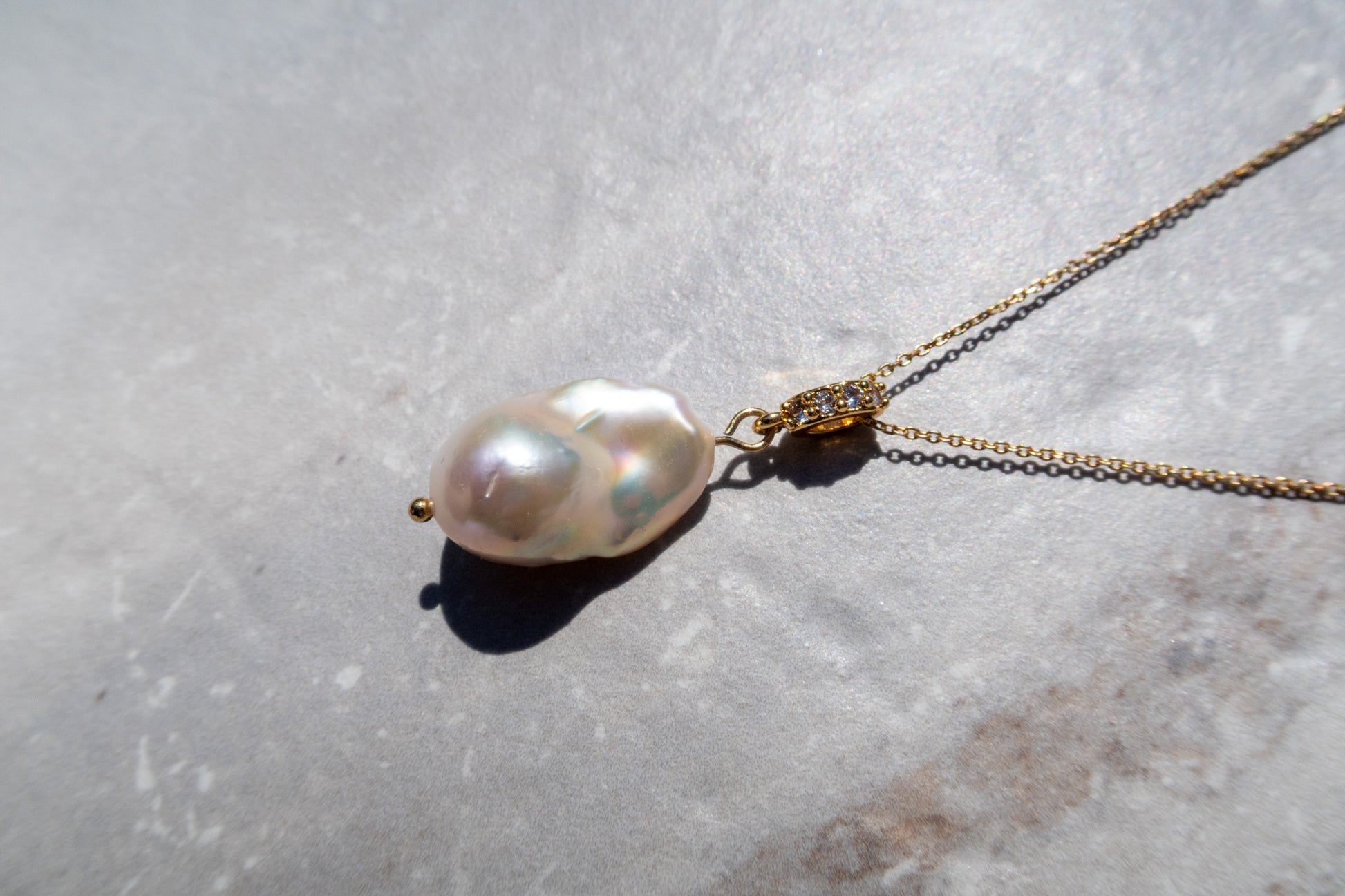 ✨ Naturally Luminous Shine! ✨ Fall in love with the subtle beauty of this White Baroque Freshwater Pearl (14x21mm) Pendant. The organically shaped pearl boasts a lovely natural luster and a unique iridescence, paired with the enduring quality of a 18-inch gold plated sterling silver chain. A timeless piece to cherish!