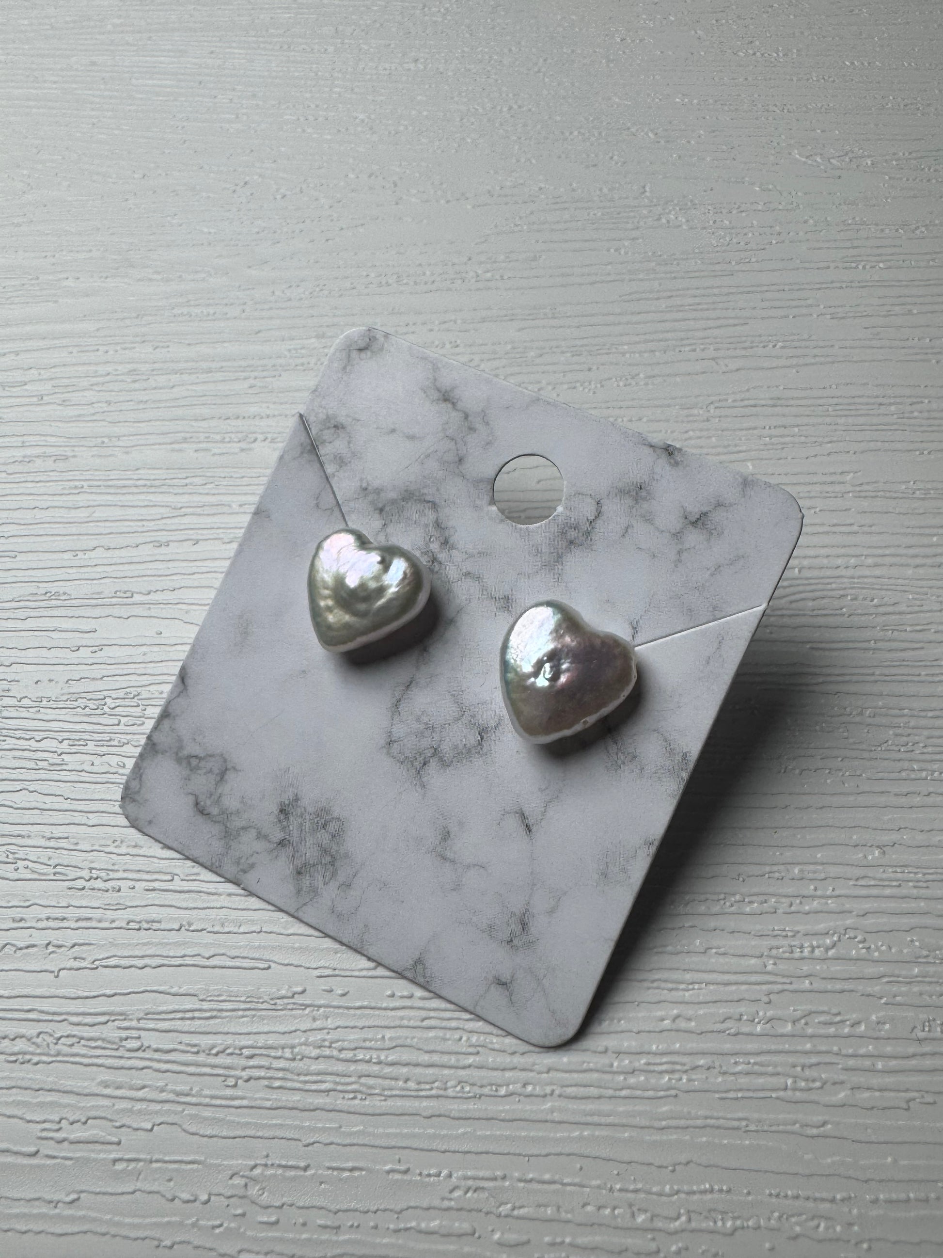 Beautiful heart-shaped freshwater pearl earrings with an iridescent finish. Perfect for adding a touch of elegance. Set in sterling silver studs.