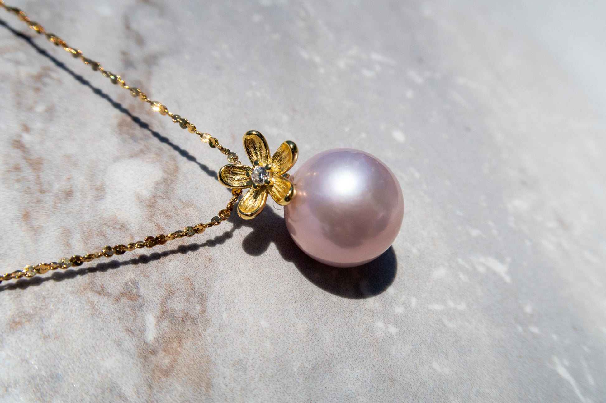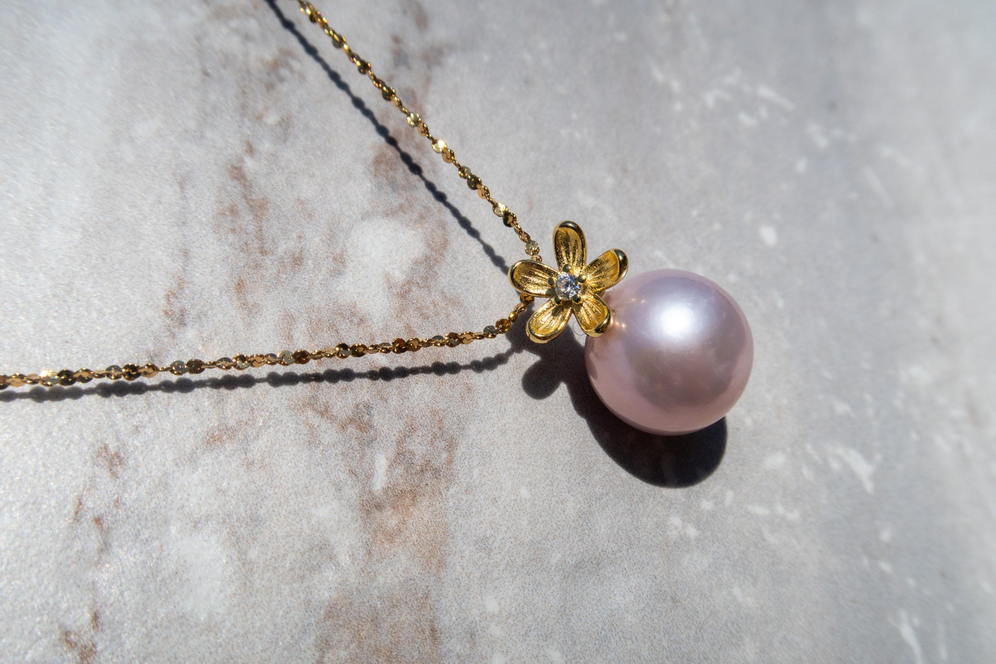 This gold plated sterling silver necklace features a stunning pink Edison pearl, celebrated for its natural color and exceptional luster. The 12mm pearl is complemented by a sleek and durable gold sterling silver flower clasp & 20-22" chain, combining timeless elegance with high-quality craftsmanship. Each piece is unique, making it a one-of-a-kind addition to your jewelry collection or a meaningful gift.