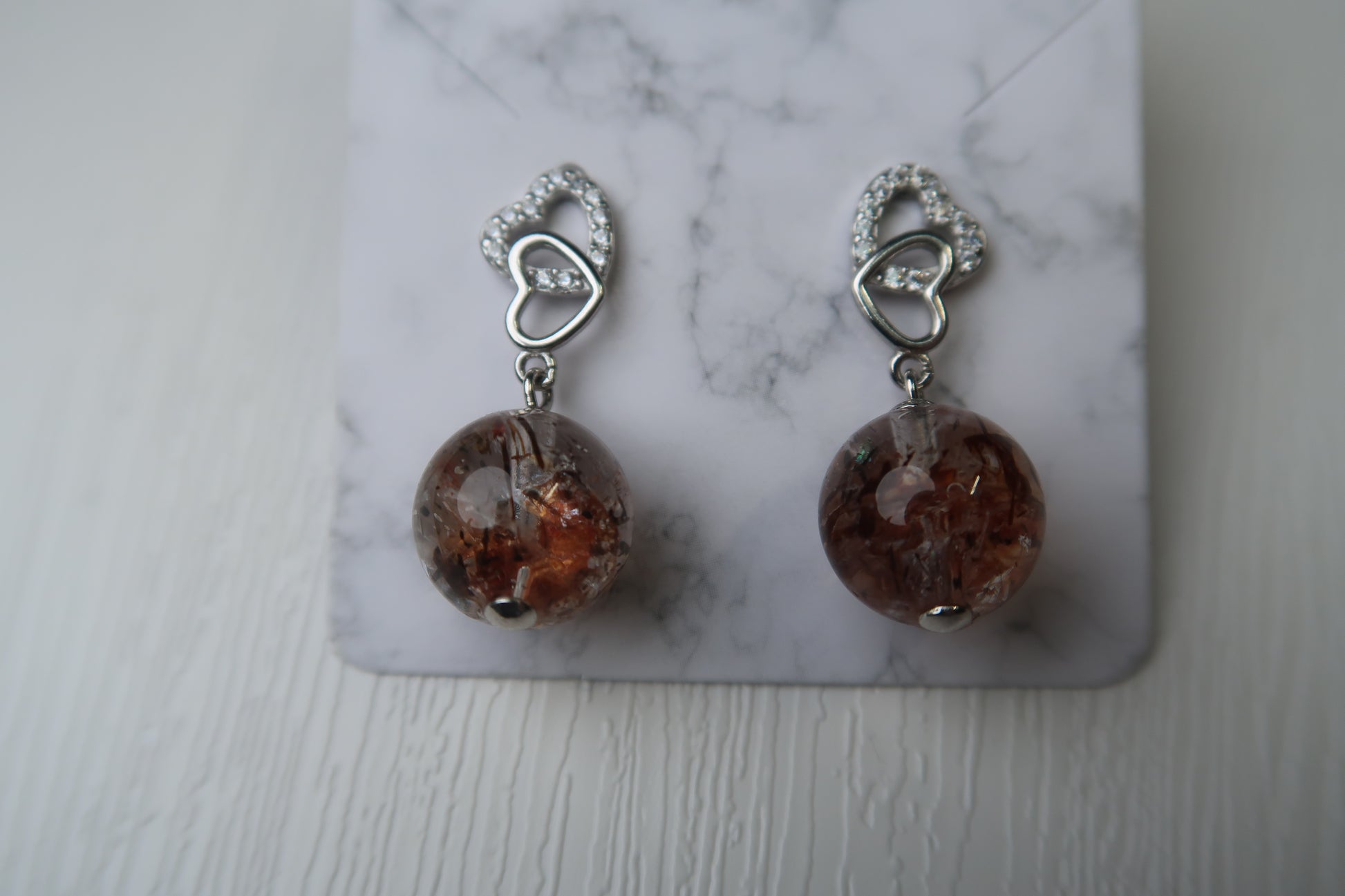 Elevate your jewelry collection with these stunning Rutilated Fire Quartz Crystal Earrings! Each earring features a beautifully crafted 11mm sphere of Rutilated Fire Quartz, known for its breathtaking visuals and unique shine. The golden streaks of rutile create a mesmerizing illusion within the crystal, catching light at every angle and giving off a warm, radiant glow.