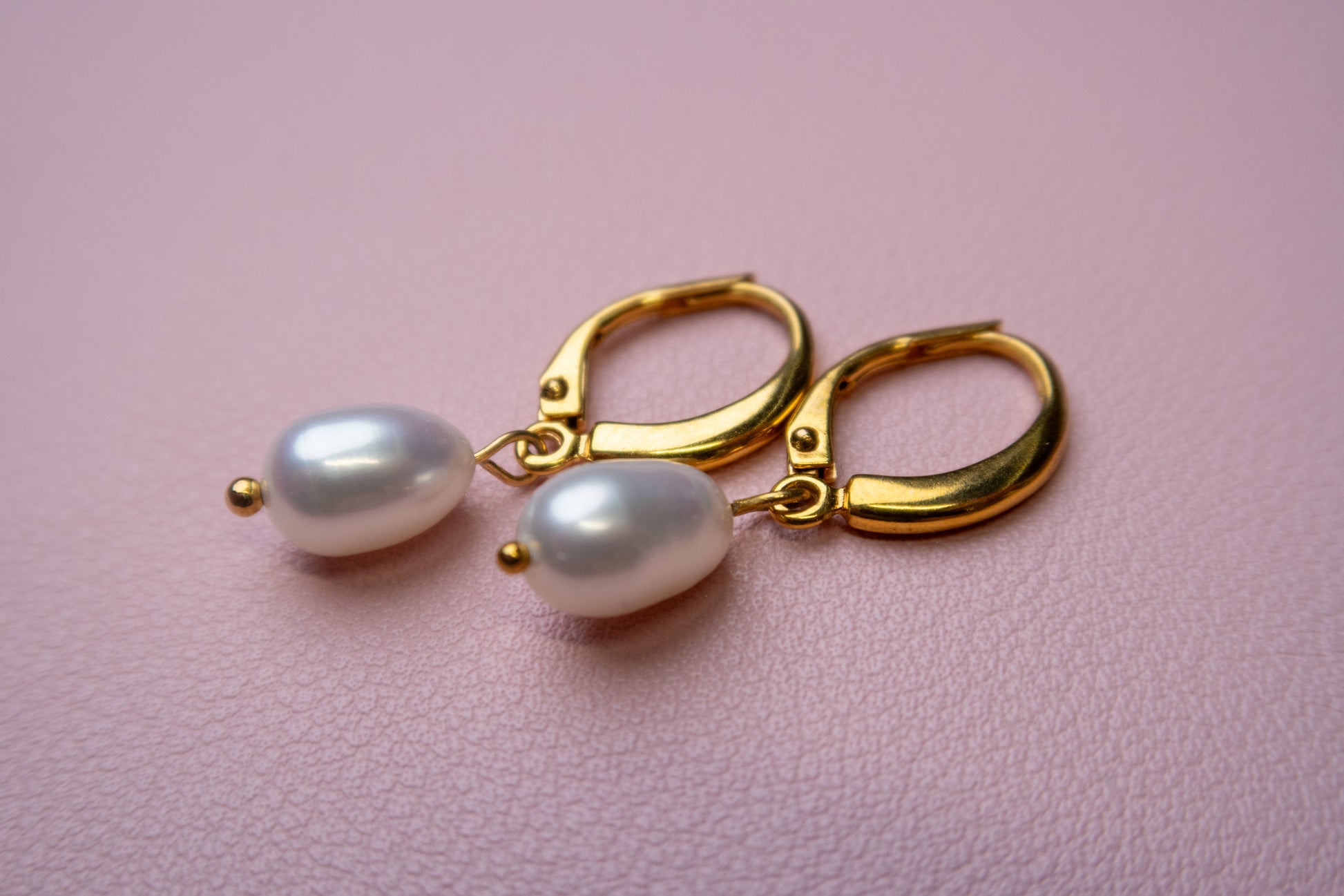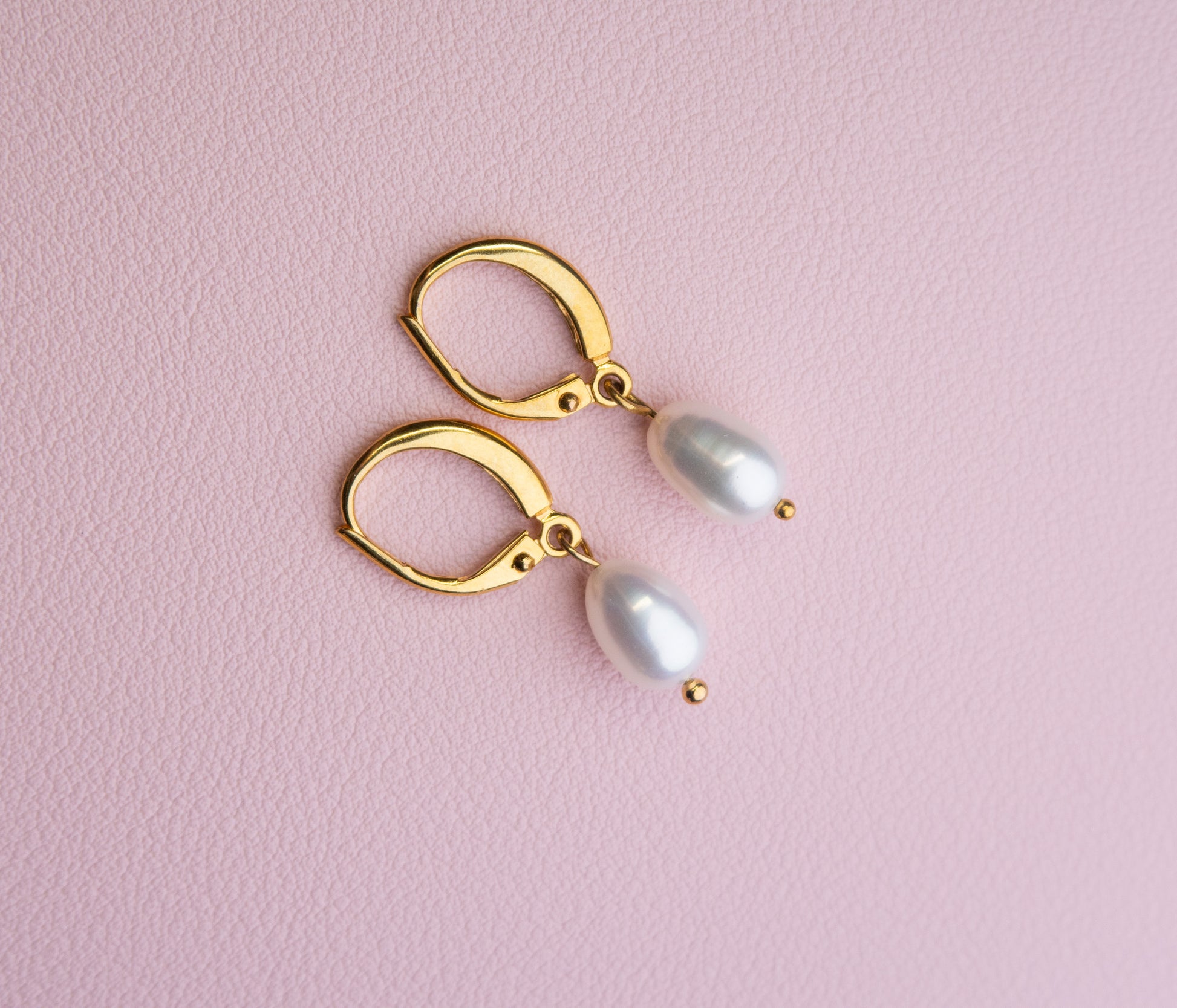 Simple White Drop Pearl Earrings - Gold Plated Sterling Silver