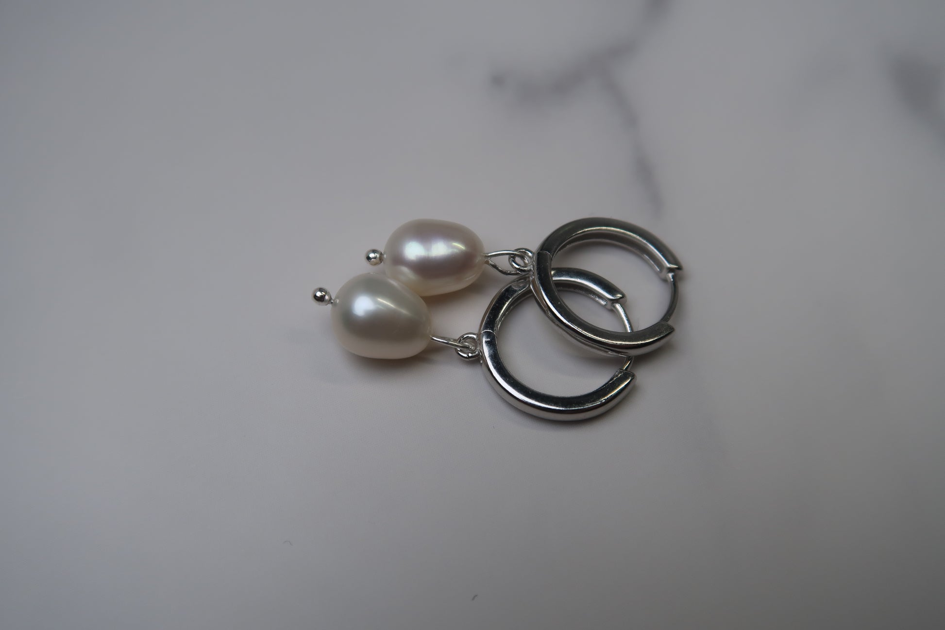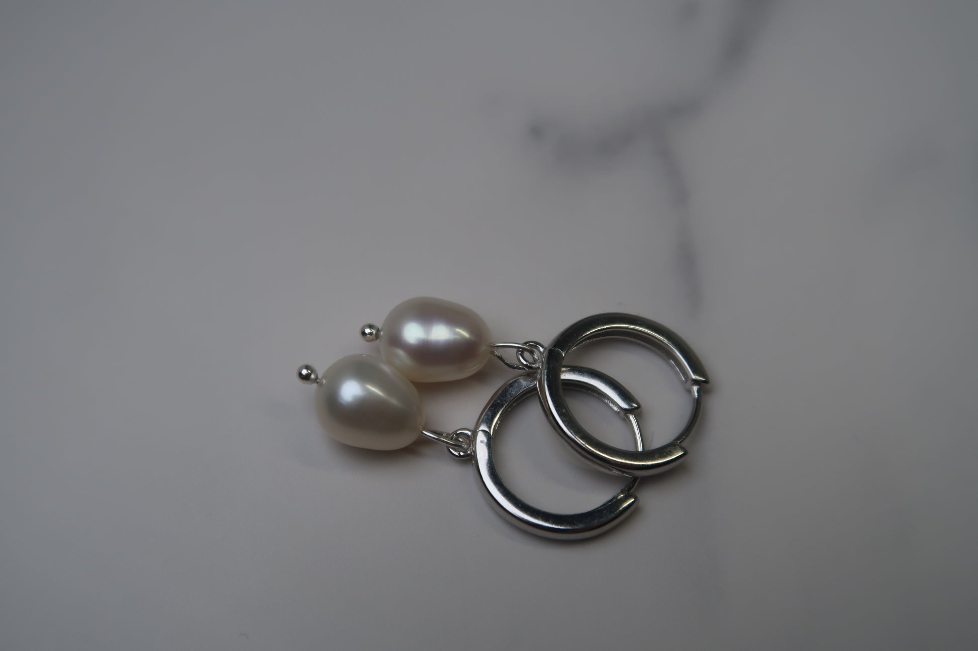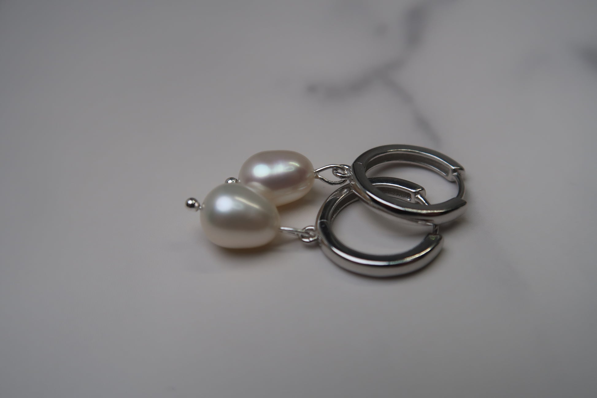 White Freshwater Pearls with Sterling Silver Hoops ✨